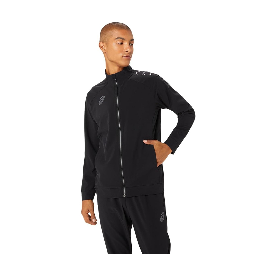 Chiếc áo khoác dệt polyester này có thiết kế đồ họa ASICS Hex giúp thấm mồ hôi vượt trội và khô nhanh.