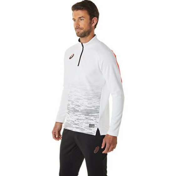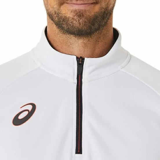 Chiếc áo khoác có khóa kéo nửa này được làm từ chất liệu dệt kim co giãn, thoải mái, có khả năng thấm hút cao và khô nhanh. Chất liệu lưới thấm hút mồ hôi ở mặt sau.