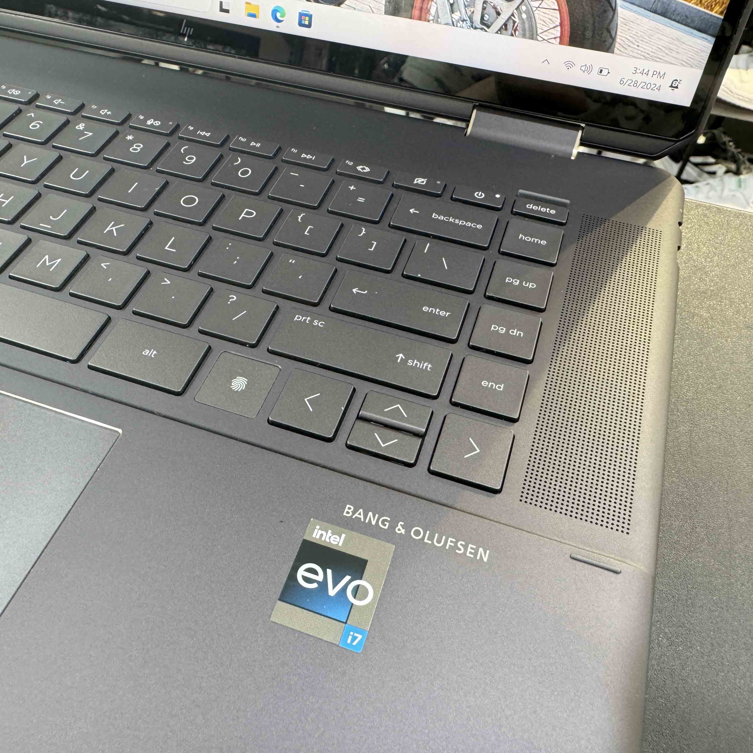 Nếu bạn đang tìm kiếm trải nghiệm đánh máy mới, chỉ cần dùng thử một lần trên HP Spectre x360 2 trong 1 16-f1013dx. Đây là bàn phím kim loại nên các đầu ngón tay có cảm giác hơi lạ so với các mẫu phổ thông khác. Độ nhạy phím cao và hành trình phím khá sâu nên khi sử dụng máy rất thoải mái, nịnh tay người dùng. Bàn phím có hỗ trợ đèn LED hoạt động tốt vào ban đêm. Bề mặt touchpad lớn mang đến trải nghiệm di chuột thoải mái, giống như khi sử dụng chuột ngoài. Bề mặt chuột được tối ưu rất tốt nên bạn sẽ không gặp phải hiện tượng lag chuột trên chiếc máy này.