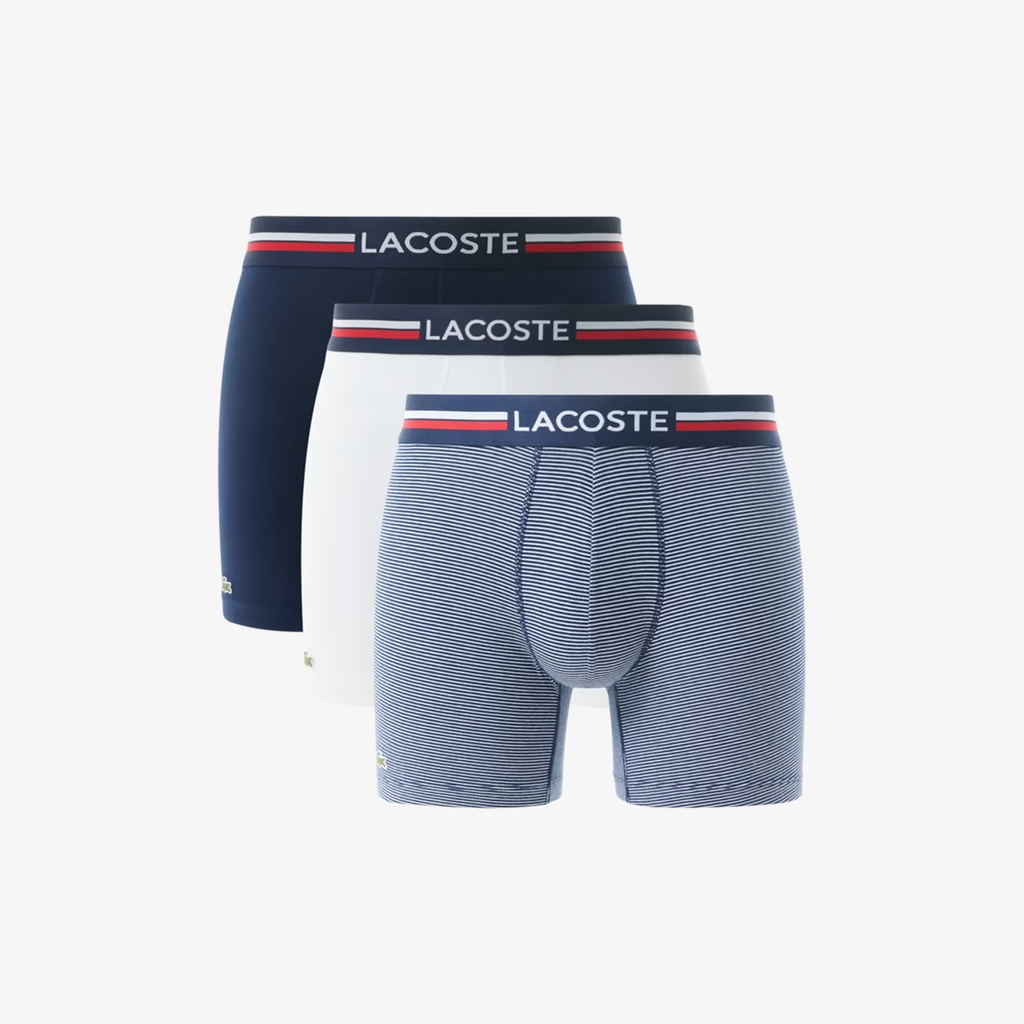 Bộ sản phẩm này, bao gồm một chiếc quần boxer kẻ sọc và hai chiếc quần boxer trơn, là một món đồ thiết yếu thực sự của Lacoste. Được làm từ chất liệu cotton co giãn mang lại sự thoải mái tối đa suốt cả ngày. Phần cạp quần ba màu tạo thêm điểm nhấn thanh lịch cho mỗi chiếc quần.