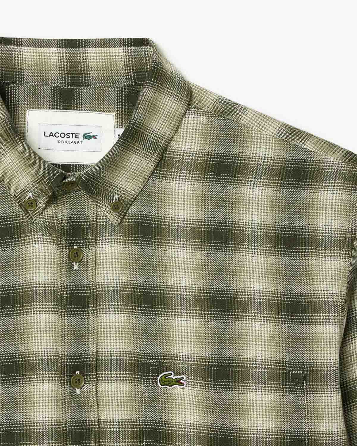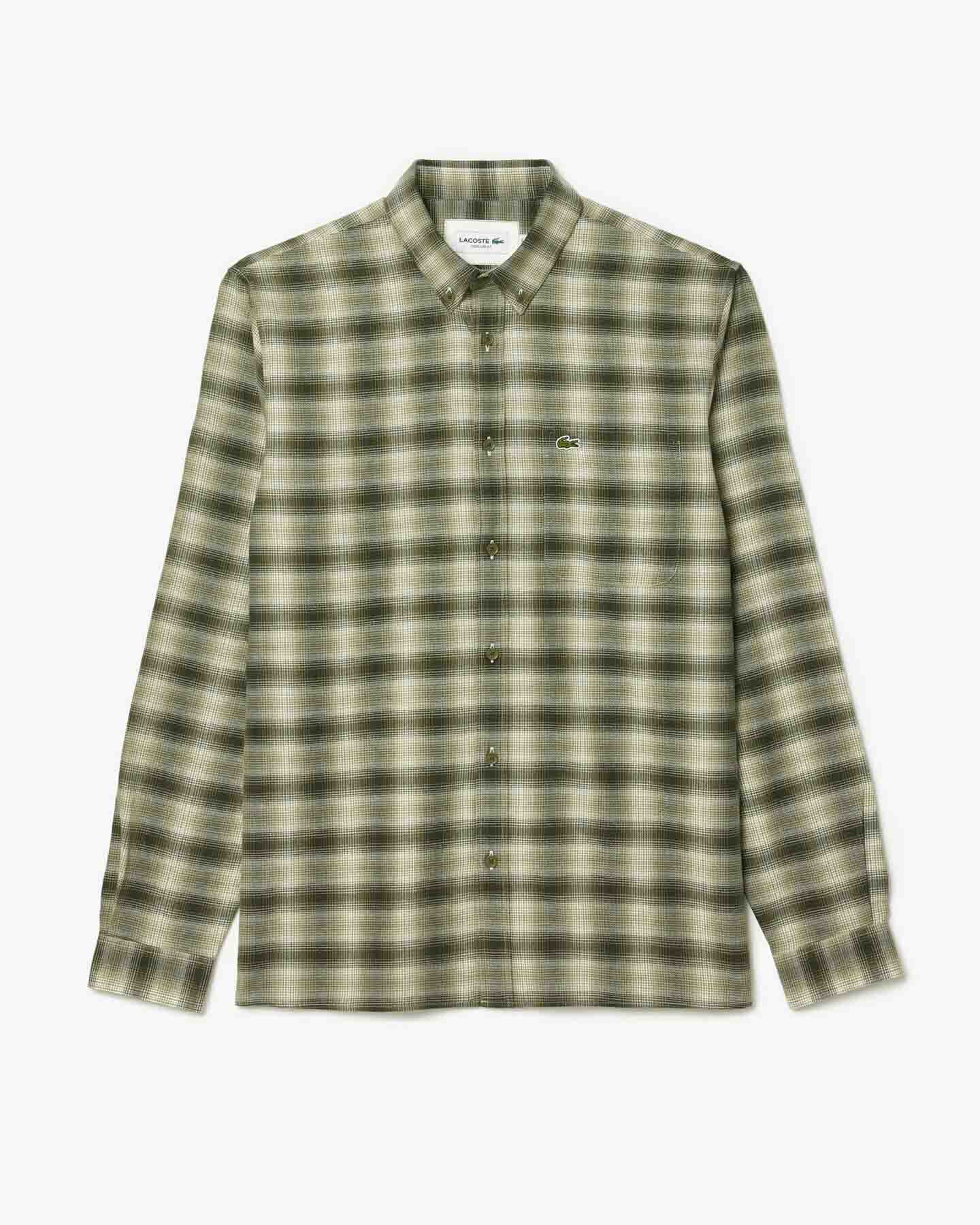 Áo sơ mi flannel biểu tượng, phong cách Lacoste. Kiểu dáng thanh lịch, họa tiết vượt thời gian, cúc áo khắc họa tiết, chi tiết tinh tế: mang đến cảm giác thoải mái nhưng sang trọng. Một món đồ thiết yếu đa năng cho mọi dịp.