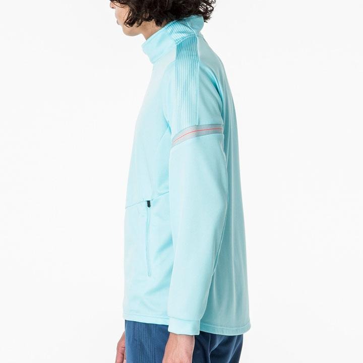 kiểu jacket thể thao nhẹ, chất liệu polyester mềm mại, thoáng khí. Áo có họa tiết in đồng màu trên vai và logo, tay áo có dải lưới thoáng, khóa kéo trước và túi khóa tiện dụng. Phù hợp tập luyện, khởi động hoặc mặc thường ngày nhờ form thoải mái và dễ vận động.