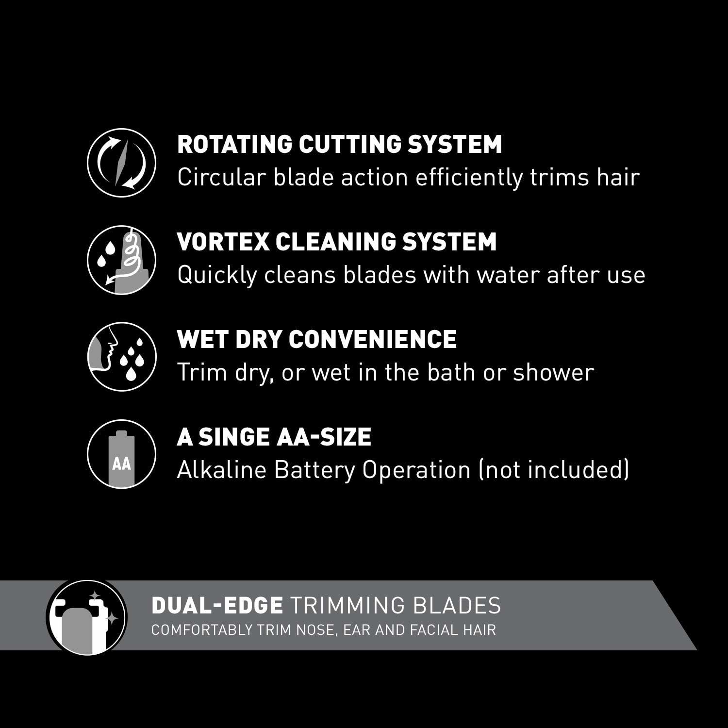 Với thiết kế lưỡi dao hai cạnh, máy tỉa lông mũi và lông tai ER-GN30 giúp tỉa lông mũi và lông tai một cách thoải mái, thậm chí còn có thể tạo kiểu cho lông mày, râu và ria mép. Máy tỉa lông mũi cải tiến này sử dụng lưỡi dao cong không gây dị ứng để tỉa lông mũi từ phía trên và hai bên mà không gây kích ứng da hoặc giật lông, mang lại trải nghiệm tỉa mượt mà và thoải mái.