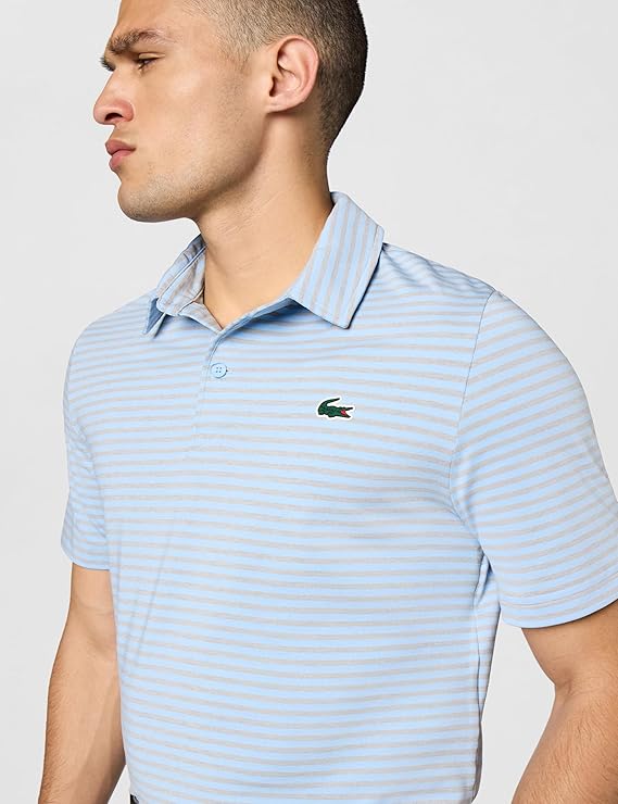Một bài học về kỹ thuật chuyên môn, được thiết kế dành cho golf, đã được các vận động viên Lacoste thử nghiệm và kiểm chứng. Sản phẩm có khả năng chống tia UV UPF 50 và chất liệu co giãn, mang lại sự thoải mái và dễ dàng vận động. Những đường sọc Lacoste cổ điển và các chi tiết đặc trưng thường thấy trên các giải đấu golf chuyên nghiệp. Áo thun kỹ thuật làm từ polyester tái chế từ phế liệu sản xuất