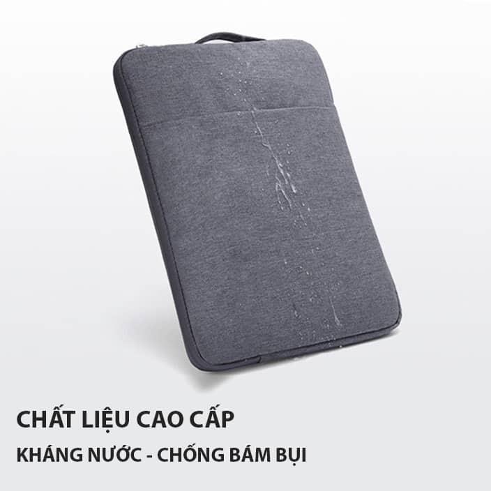 Mặt ngoài túi chống sốc 13inch được làm bằng chất liệu cao cấp có khả năng chống thấm nước, chống bám bụi và hạn chế phai màu, giữ fom túi theo thời gian sử dụng . Tính năng này là một điểm cộng rất lớn đối với người dùng thường xuyên phải di chuyển trong những ngày mưa gió.